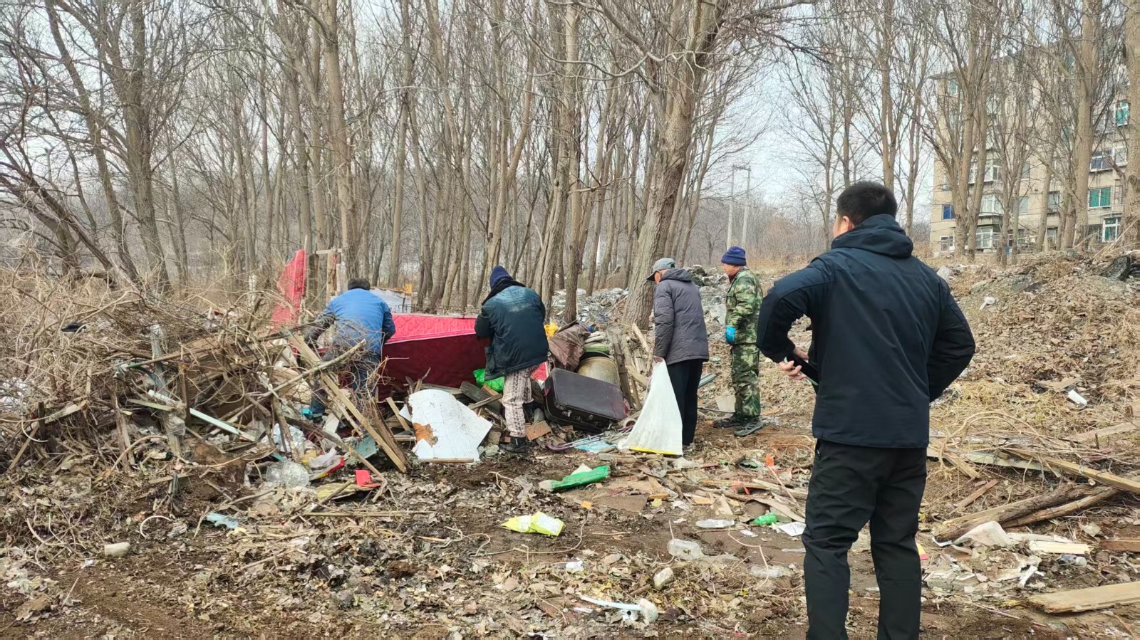 联合工作组组织专业人员和机械车辆进入现场。在确保安全的前提下,工作人员有序对认定的违建进行依法拆除,并对各类无主堆积物进行了集中清运。整个清理过程规范、高效,有效消除了该区域因违建和杂物堆积带来的消防安全隐患、环境卫生问题,也为该地块后续的规划建设平整了场地,创造了条件。